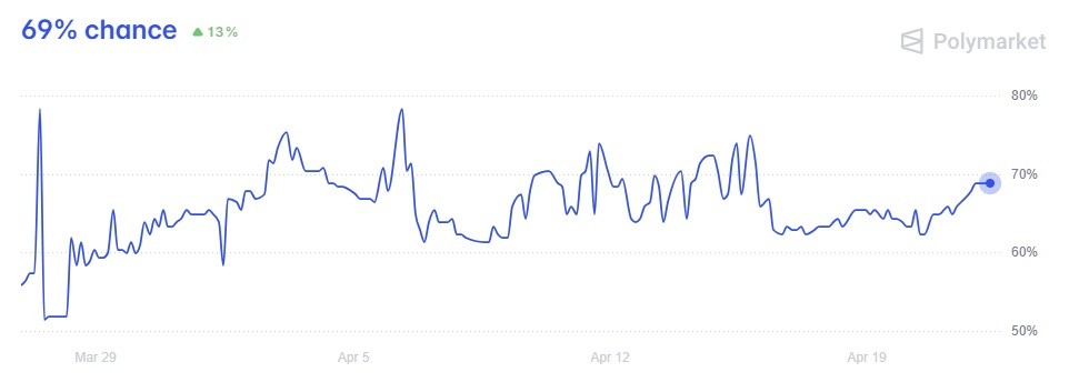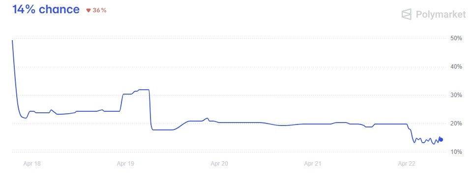 Figure 2. Polymarket Odds that Trump Drops Powell Investigation by June 30 (%)