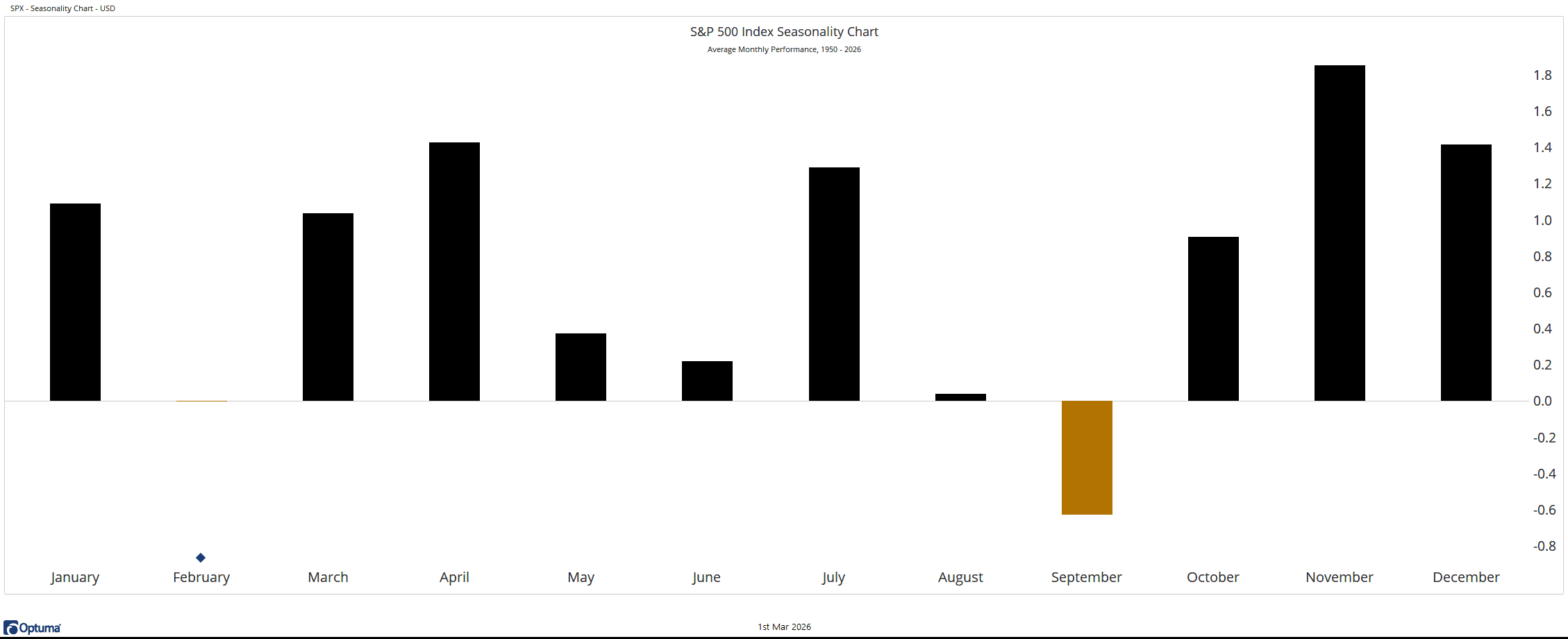The S&P 500 closed lower in February, preserving that month’s reputation for modest weakness. We now enter March, which has historically been a stronger month.