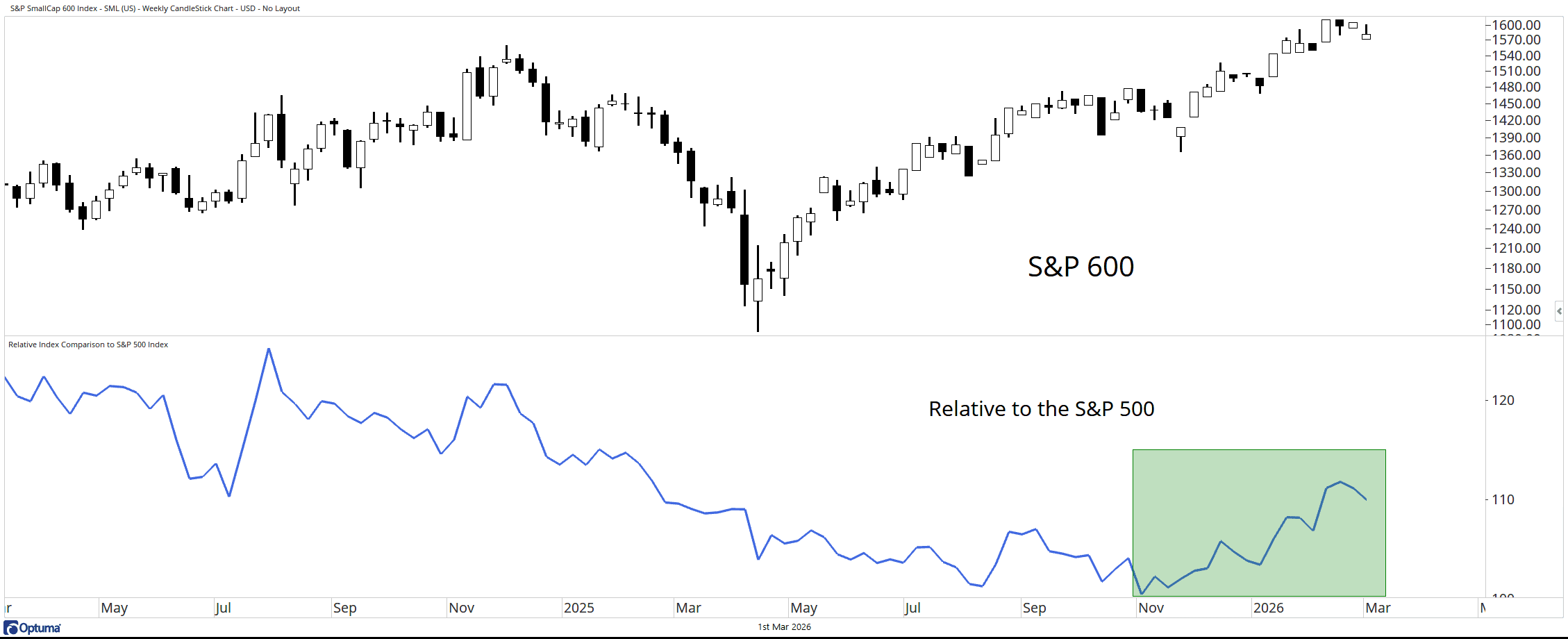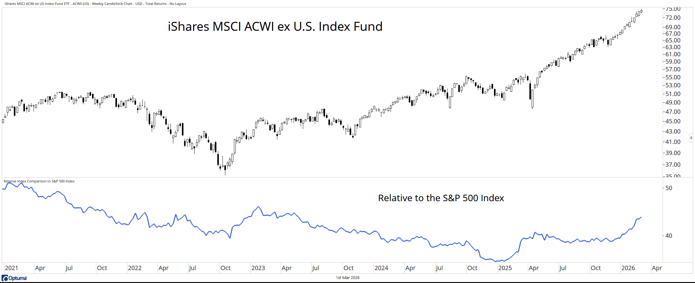 We’ve spent a lot of time discussing the rest of the world—and for good reason. It’s strong, and it remains strong. The iShares MSCI ACWI ex U.S. Index Fund (ACWX) made another new high last week. At the same time, its performance relative to the S&P 500 also reached a new high after bottoming in early 2025.