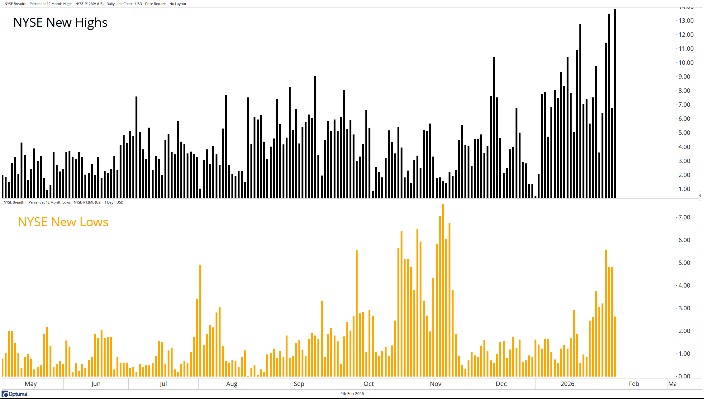 The first “friend” doing some heavy lifting is the NYSE New Highs list. Recall that we’ve been highlighting an expansion in new lows. At the same time, we’re seeing an explosion higher in new highs.