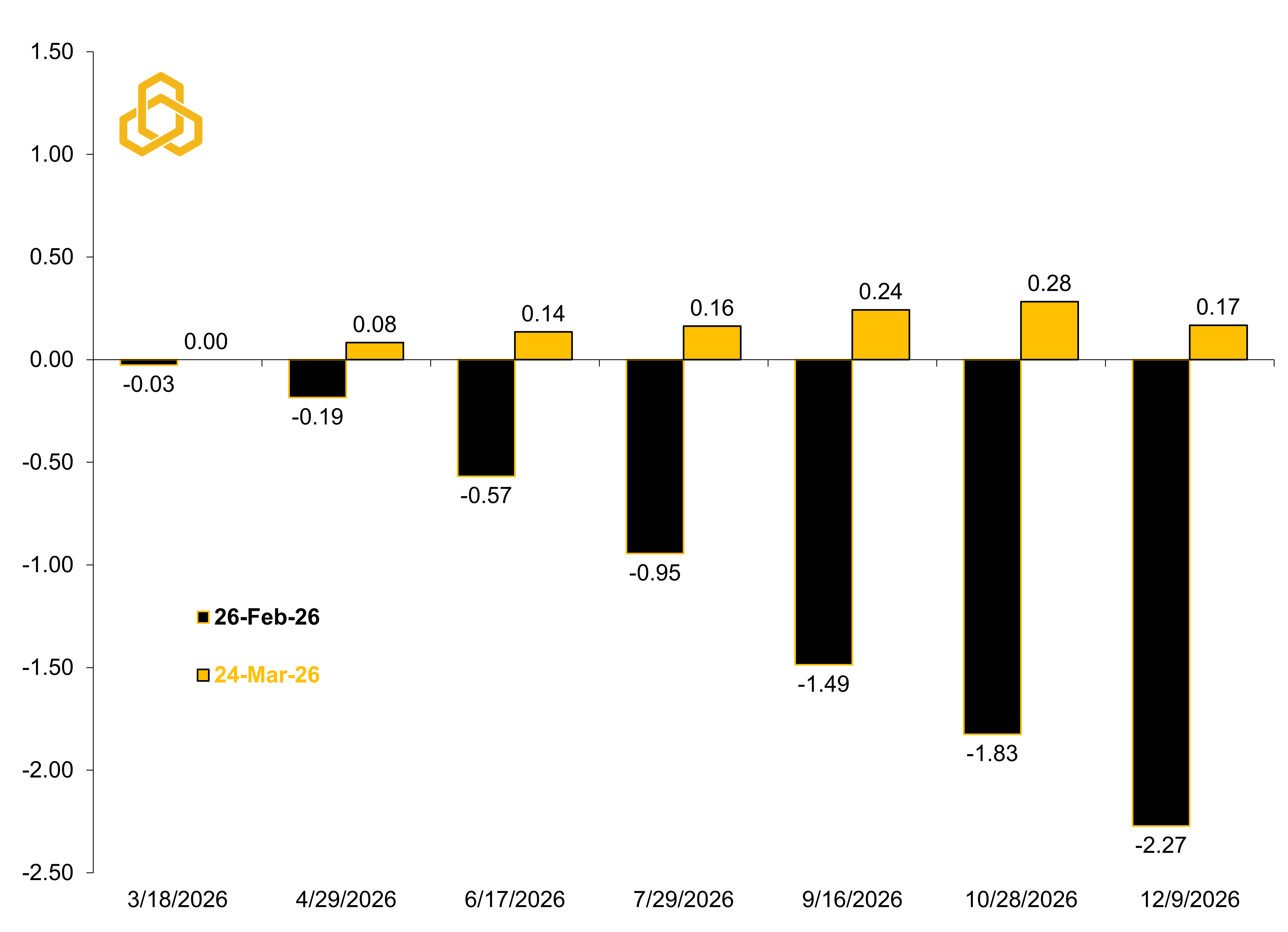 Figure 3. Fed Funds Futures Implied Number of Rate Cuts/Hikes