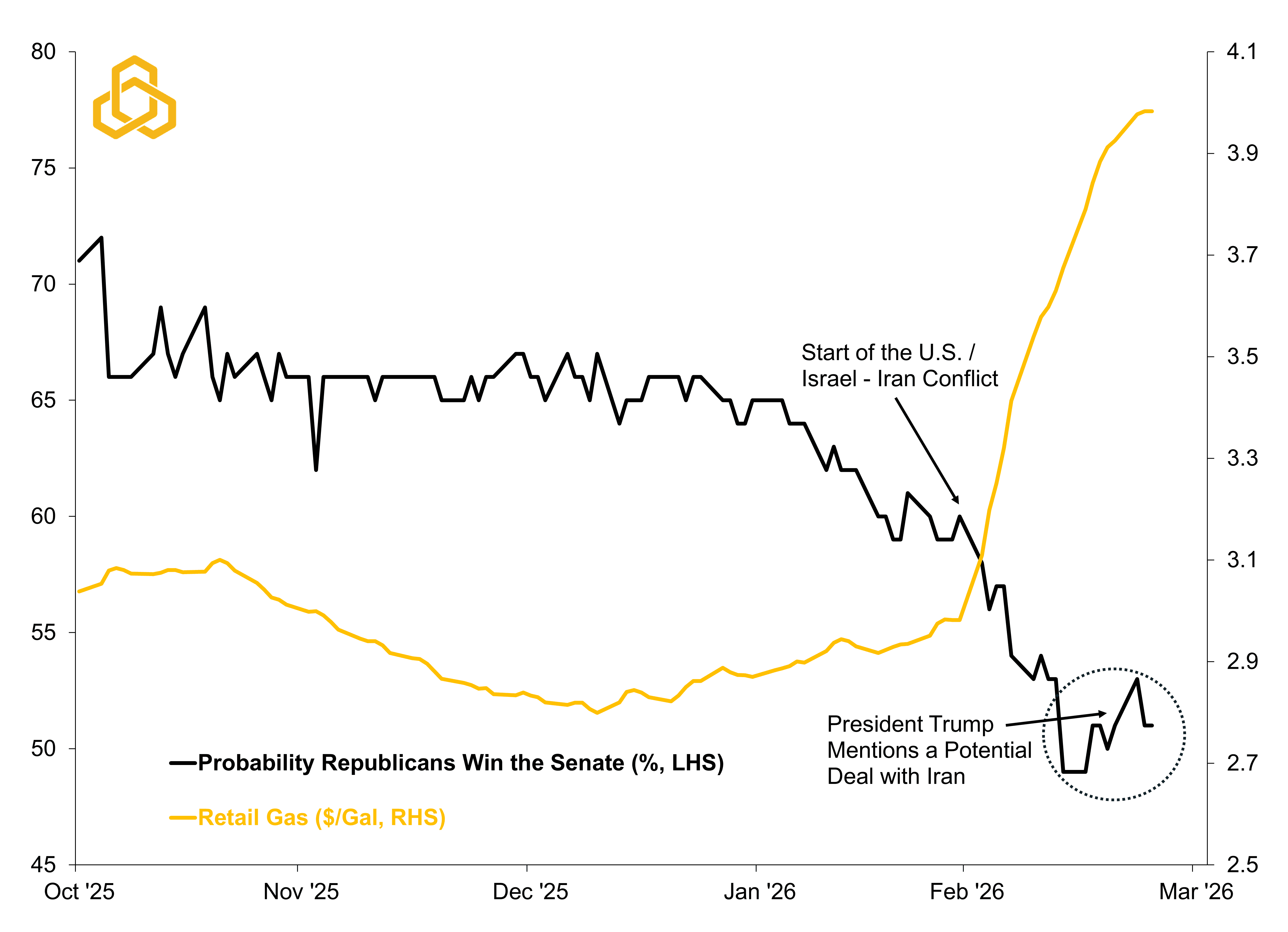Figure 4. Odds of Republicans Winning the Senate (%) vs. Gas Prices ($/Gal.)