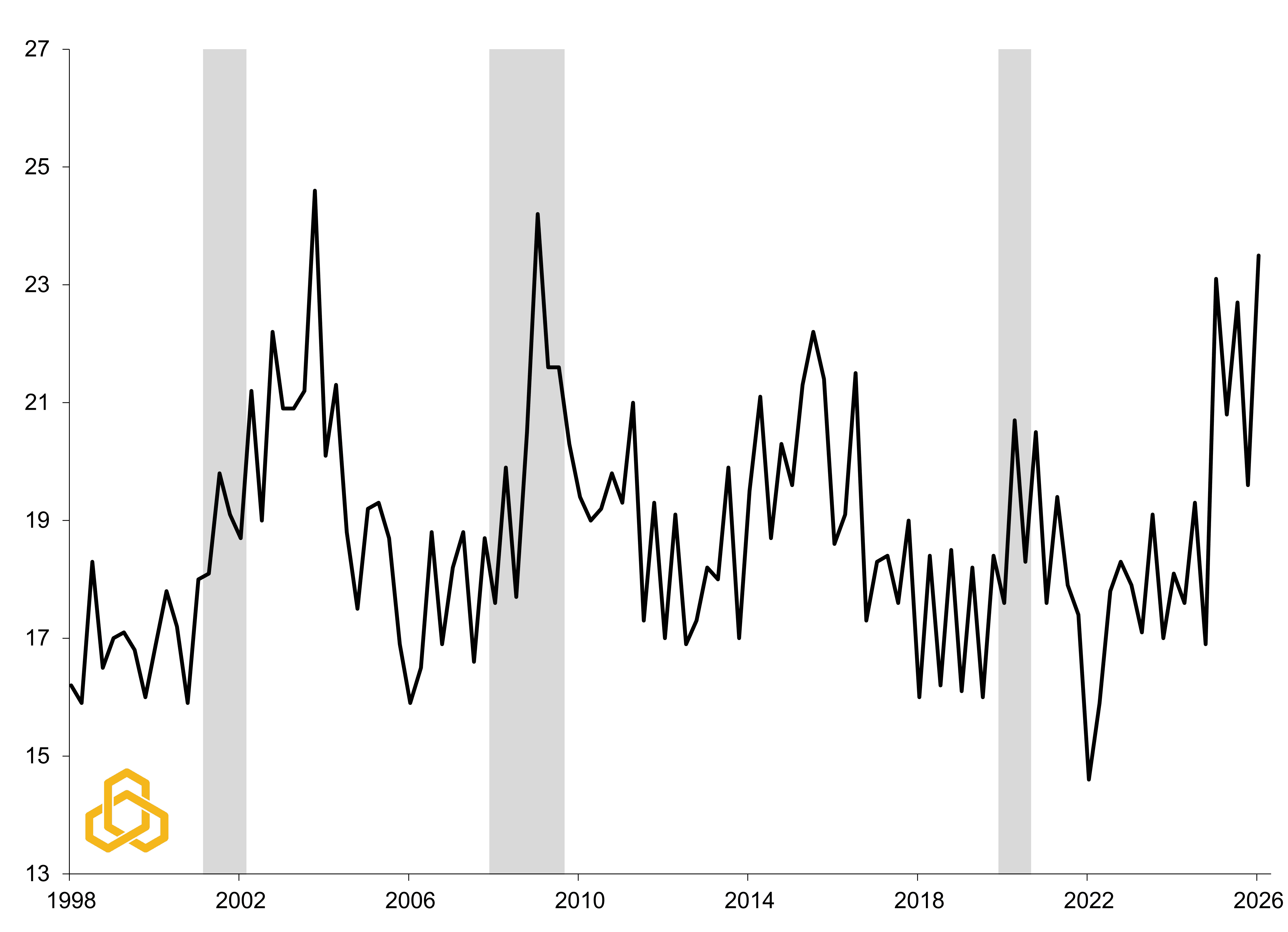 If growth does not produce broad-based employment, it risks becoming a "tree falling in a forest" with no one around to hear it. This disconnect is evident in consumer sentiment with the percentage of workers expecting to lose their jobs in the next five years currently hovering just shy of its Global Financial Crisis peak (see figure 6). Driven by the rapid integration of Artificial Intelligence, worker anxiety remains extremely high. For the average American, the recovery will not feel “great” until the "Help Wanted" signs appear for everyone…not just a select few.