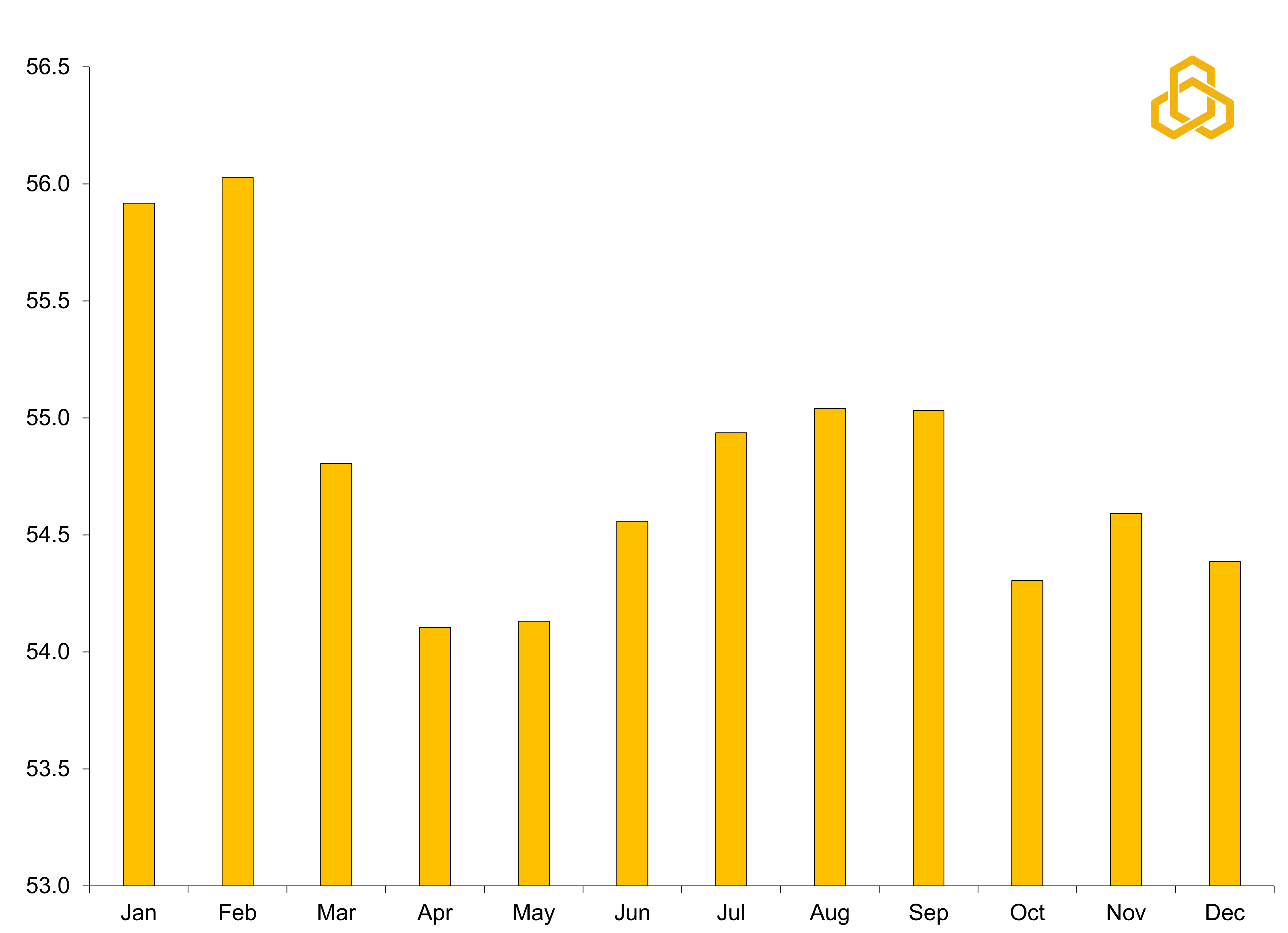 Figure 2. ISM New Orders Index Average by Month (Jan. 2004 – Jan. 2026)