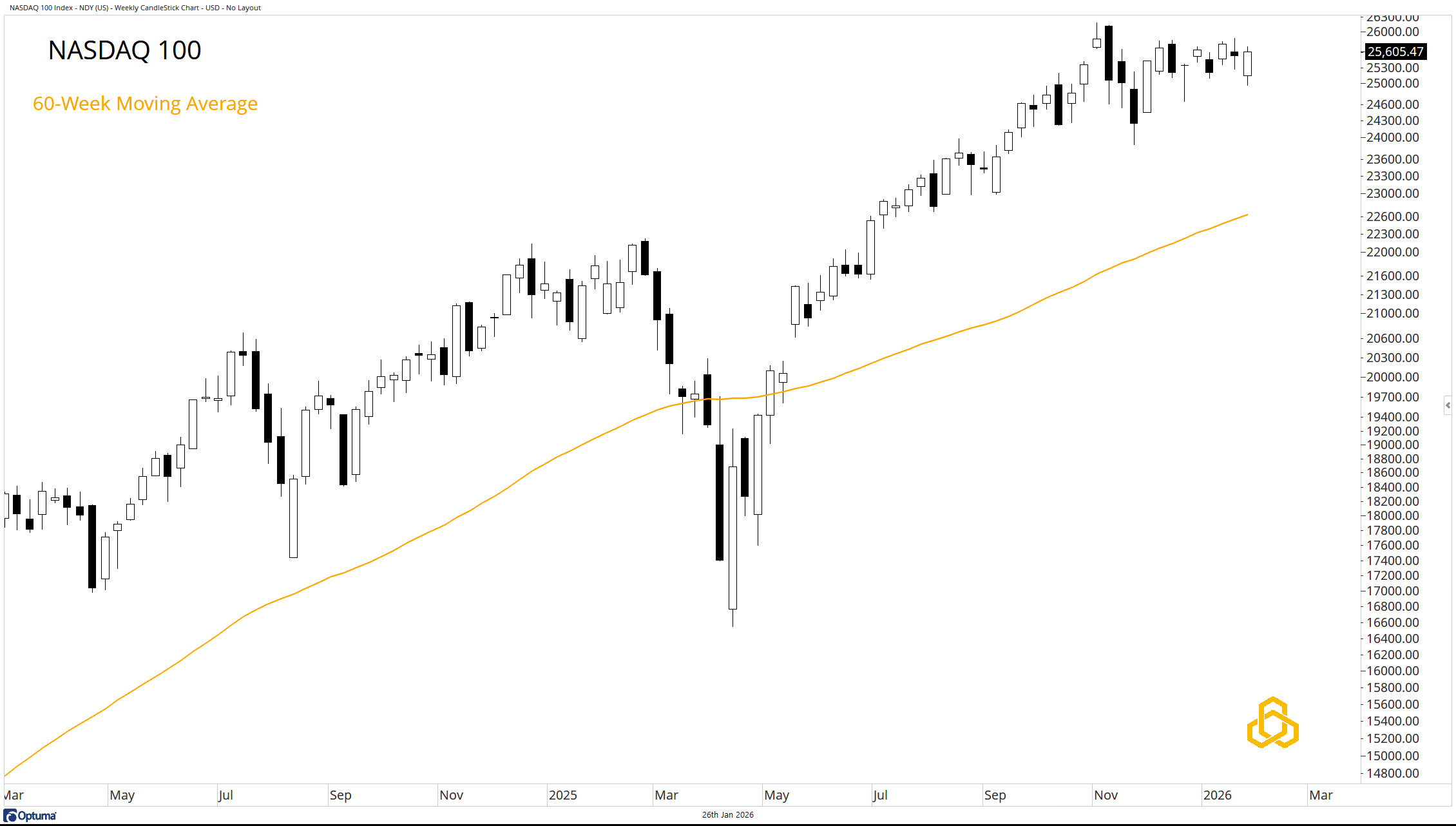 The closely watched index moved lower for a second straight week but remains well above a steadily rising 60-week moving average. Is this enough to cause concern? Absolutely not. But we want to see the weakness bought quickly.