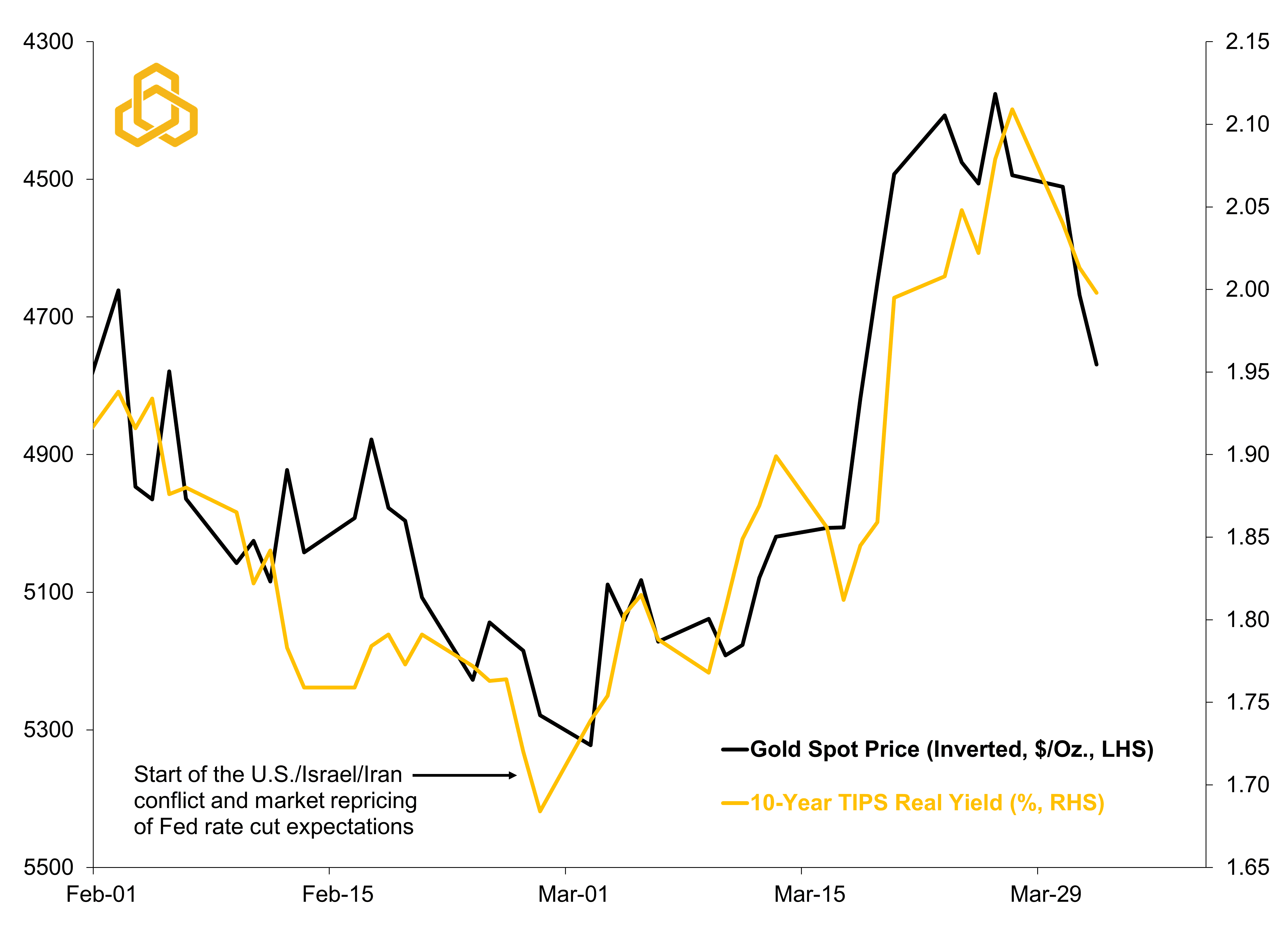 We remain in the camp that a rate hike will ultimately be avoided as tensions ease and the labor market remains sluggish. However, the recent whipsaw in gold prices serves as a useful reminder that markets tend to move ahead of Fed communication (see figure 3 and No More Goldilocks for Gold? Here is What Changed for additional detail).