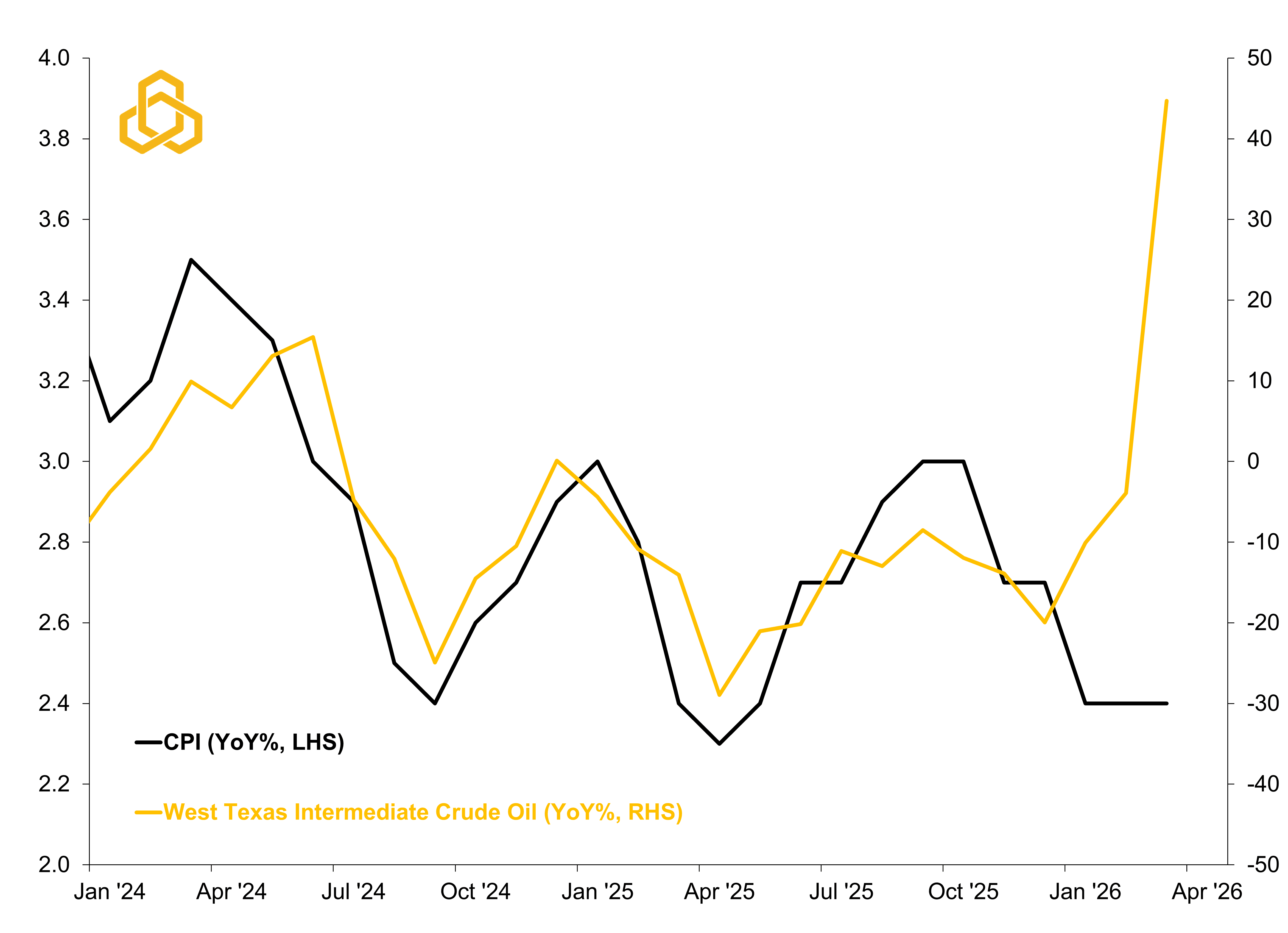 Figure 1. Consumer Prices vs. Crude Oil Prices (Year-on-Year Percent Change)