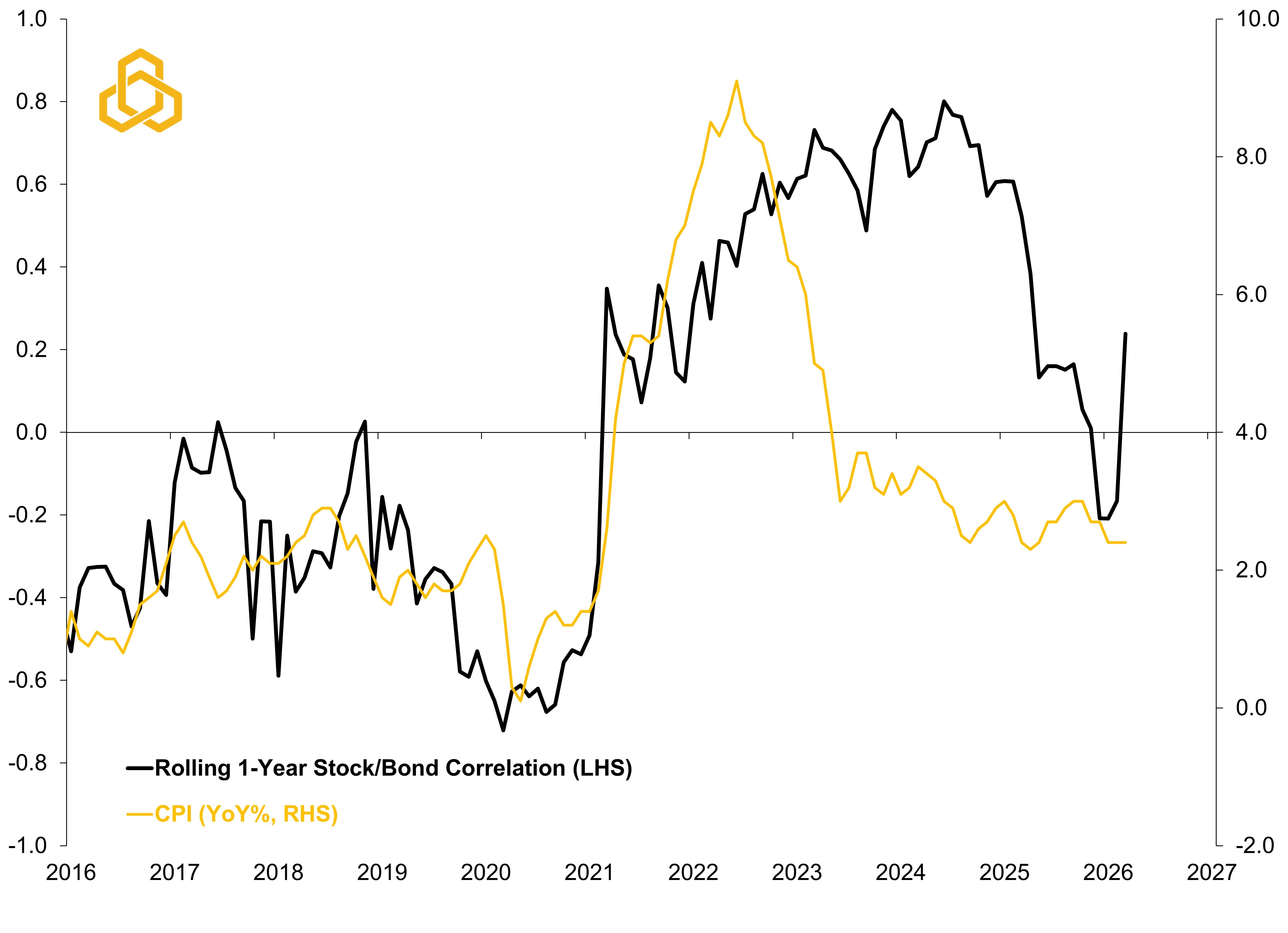 Another complicating aspect of rising inflation is that asset class correlations begin to shift. Traditional portfolio diversifiers like bonds can become more positively correlated with equities as yields rise alongside inflation expectations.